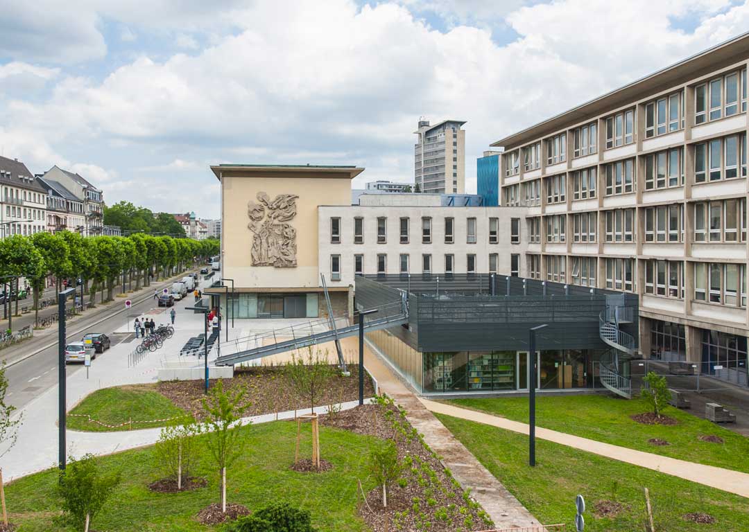 - Depuis la gare, Ligne C direction "Neuhof Rodolphe Reuss" - Arrêt "Université" + 2 minutes à pied